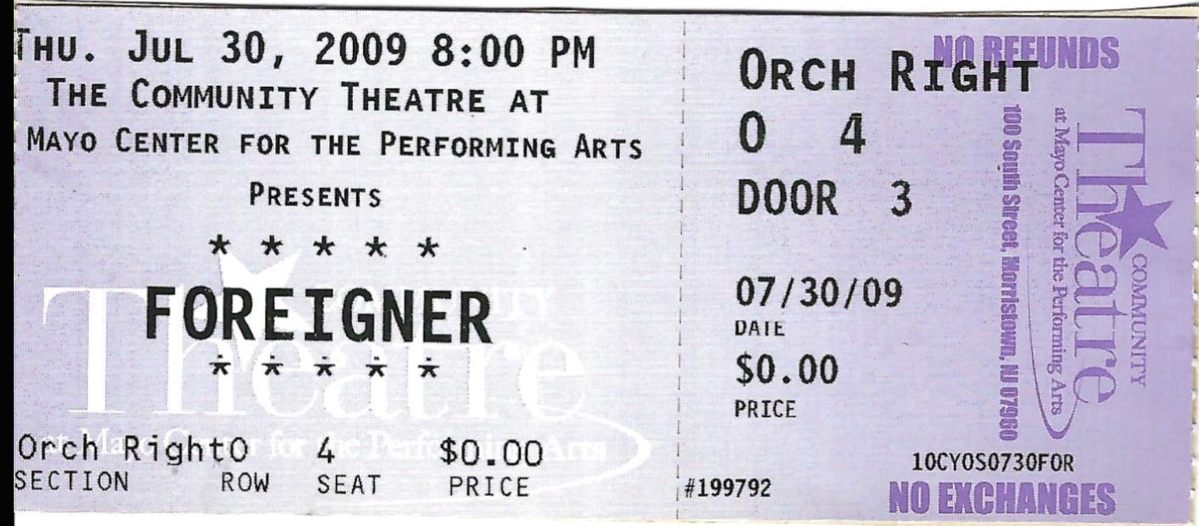 July 30, 2009, Mayo Center for the Performing Arts, Morristown, NJ